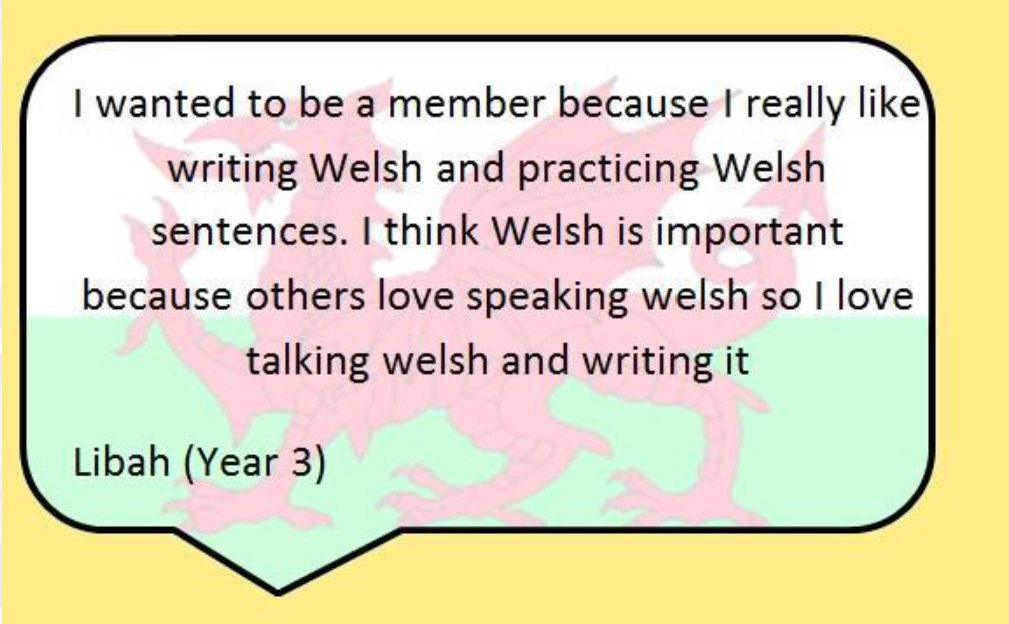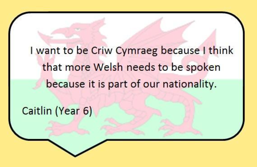 • We want to make children speak more welsh so we give out a Tocyn Iaith (Welsh language token) when we hear Welsh being spoken.
